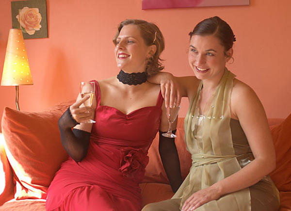 „Snappy Madame“ (links) ist ein zeitloses Kleid mit bequemen ¾ langen Fledermausärmeln und figurbetontem Schnitt. Am vorderen Ausschnitt sind als Blickfang kleine kurze Perlenstränge angenäht. „Greta’s Secret“ (rechts) Zu diesem Kleid eine große Sonnenbrille und hellen Teint tragen – ein perfekter Divenauftritt. Auch als Brautkleid von Standesamt bis zur Partynacht tragbar….